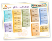 In the Mother Goose Time teacher plan book, it offers amazing helps to teach on their level. It has learning objectives for each activity. Each one ties intothe Developmental Skill Continuum. If you click here it will take you to the early learning skills for Preschool. It is a interesting chart that can show skills, goals and benchmarks for your child.