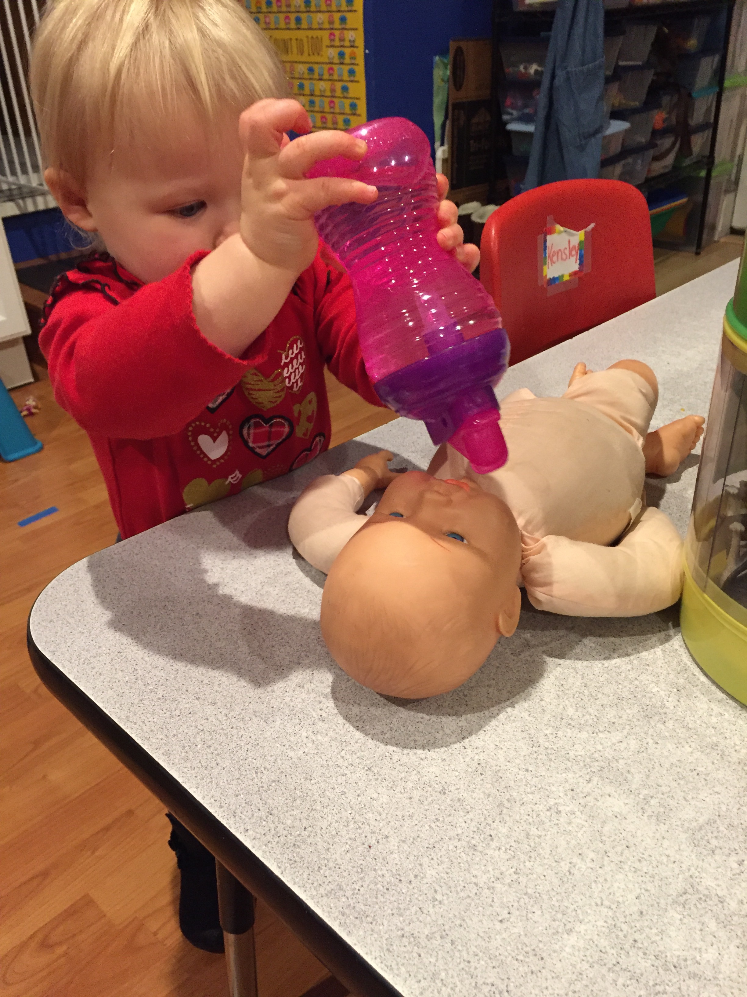With all of the baby talk around here the little ones are in heaven! They absolutely love playing and being “mamma” to the dolls. Here is a cute shot of CR sharing her water bottle with her baby!