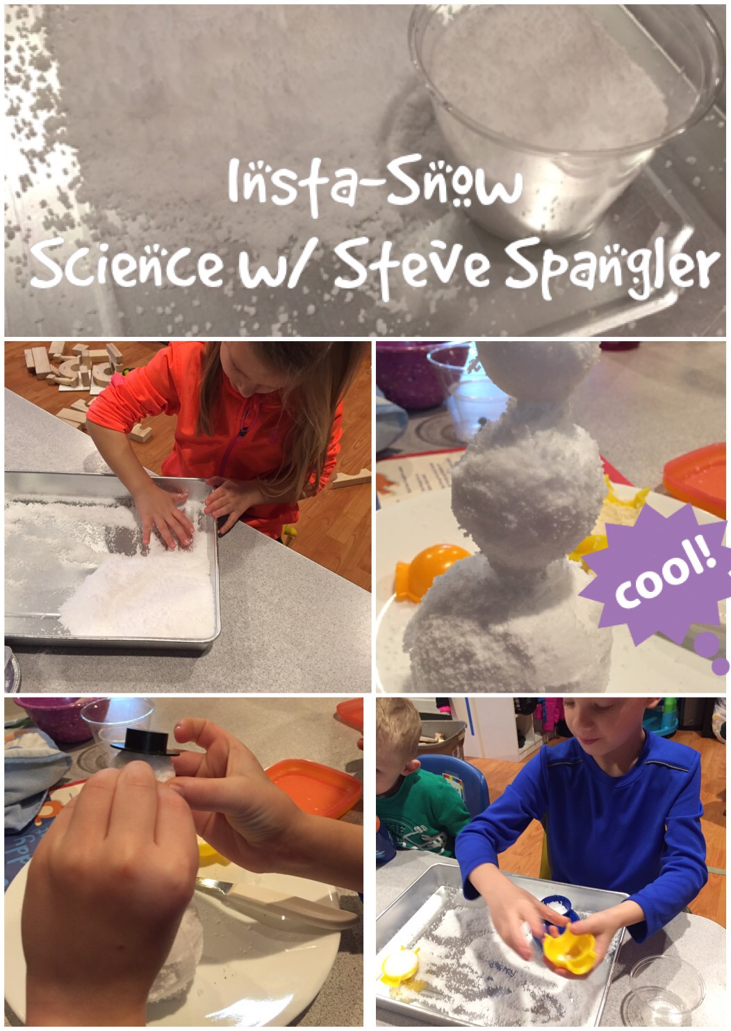 One of the highlights of our “cooped-up-all-winter” activities is the Monthly Spangler Science kits Z got for Christmas from Gma/Gpa Calvin. We have only received two boxes but we are in LOVE! This month is Instant Snow. It’s like we haven’t had enough of that outside we had to bring it inside too. You can check out Steve Spangler Science here! I discovered the website and products in a Science for Early Childhood training I took. It’s amazing.